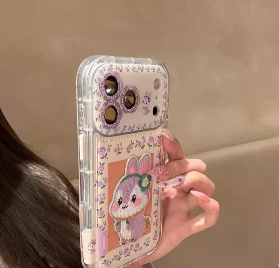 This autumn winter cute floral embroidery purple rabbit phone case features a fresh floral base, paired with a 3D embroidery purple rabbit pattern, creating a soft and healing girlish atmosphere✨. The full-coverage shockproof design precisely fits models like iPhone17promax, iPhone16pro, and iPhone15, with options of single case or case + pink knot white furry strap set. The transparent frame does not block the original color of the phone, and the combination of embroidery and florals adds a layered style, making it a must-have accessory for creating autumn winter soft girl looks, easily making you the most dazzling sweet girl in the crowd🎀.