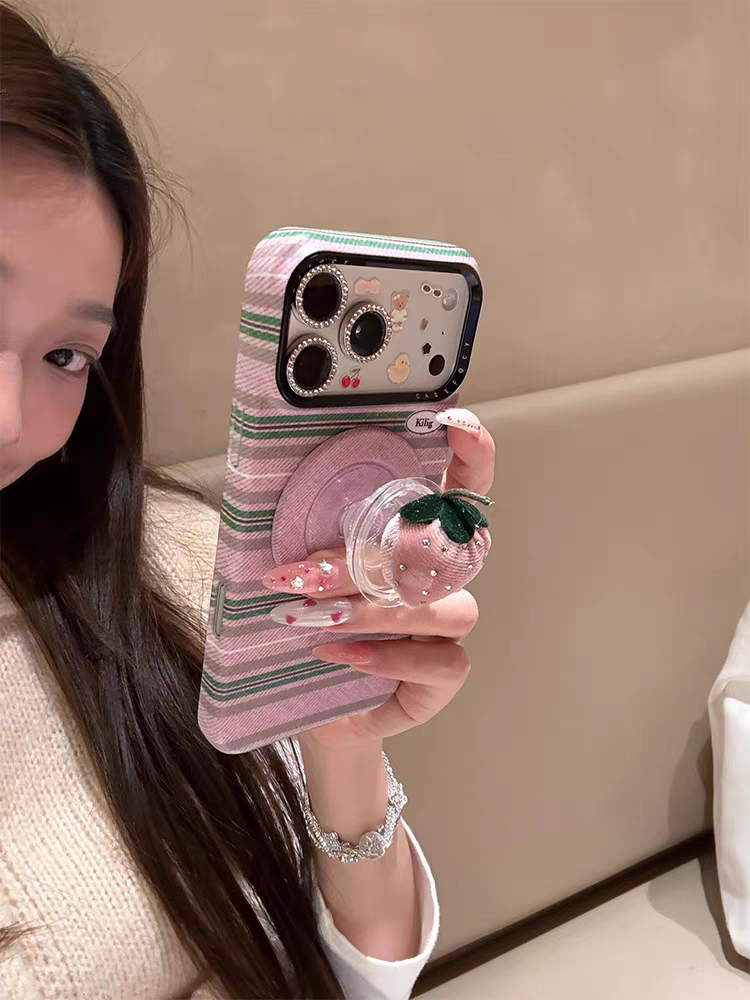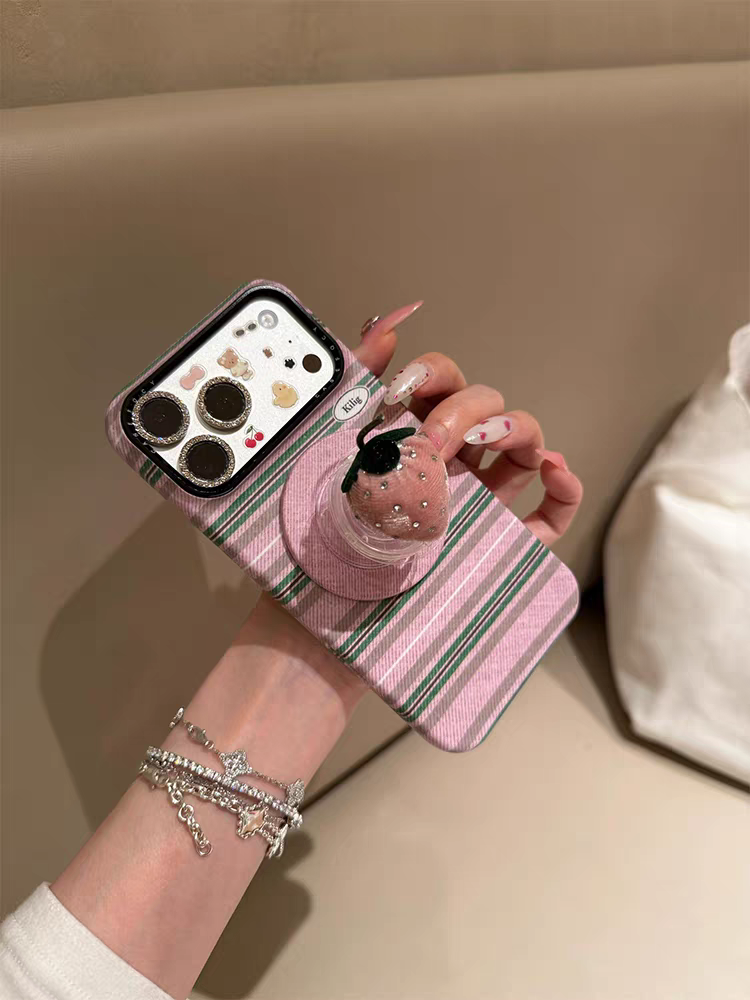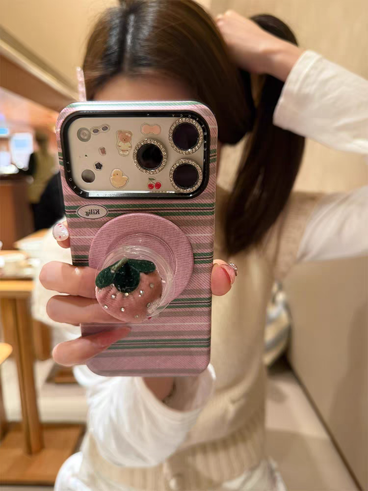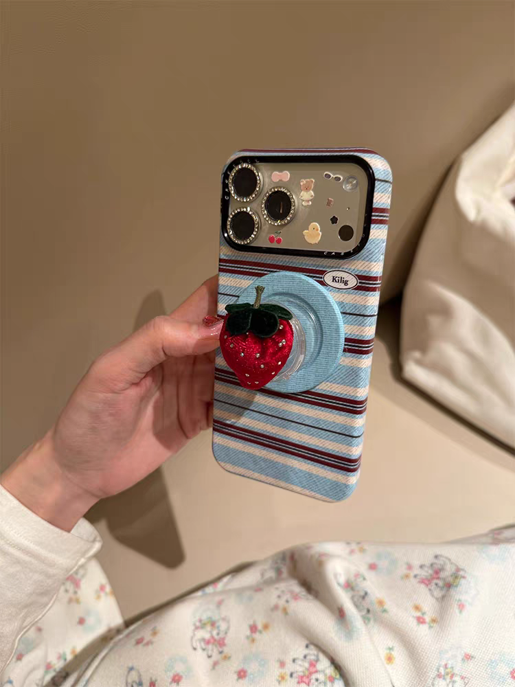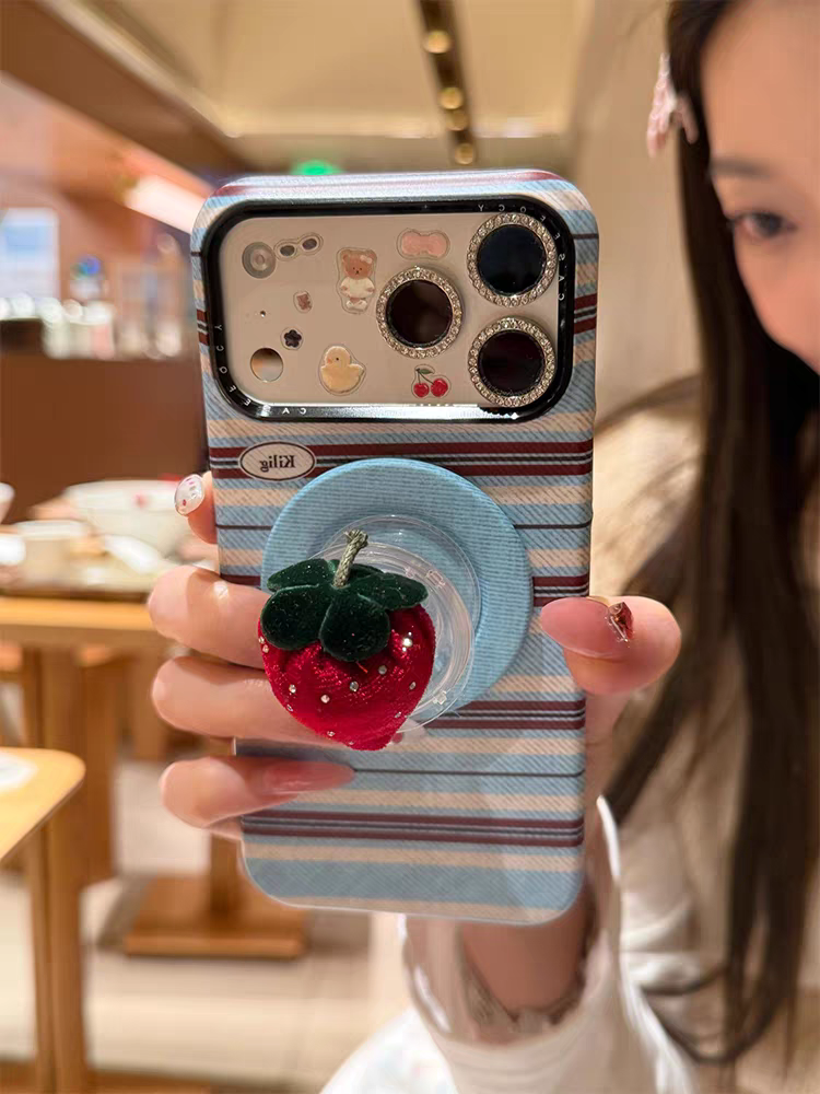 This Casery Korean Style INS phone case features a color block stripe base, paired with a 3D strawberry magnetic stand, creating a fresh and sweet girlish atmosphere✨. The full-coverage shockproof design precisely fits models like iPhone17promax, iPhone16, and iPhone15pro, with two color options: pink base + pink strawberry stand, and blue base + red strawberry stand. The layered stripes blend with the cute strawberries, and the magnetic stand frees your hands, perfect for daily video watching and photo taking, easily making you the most dazzling fresh girl in the crowd🎀.