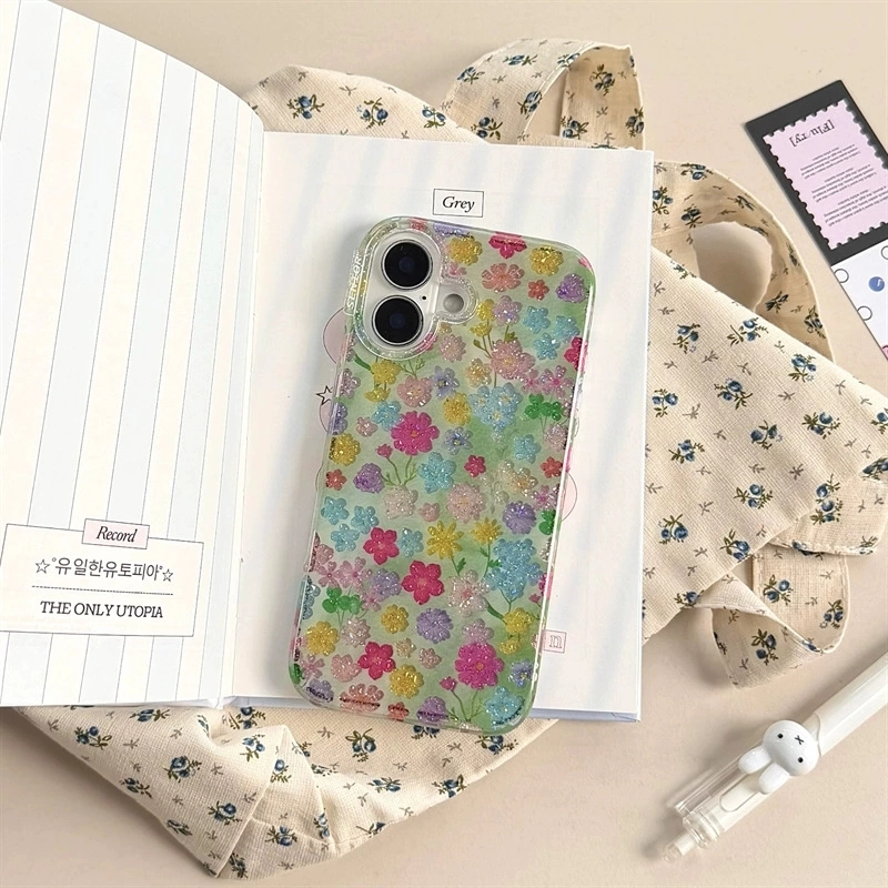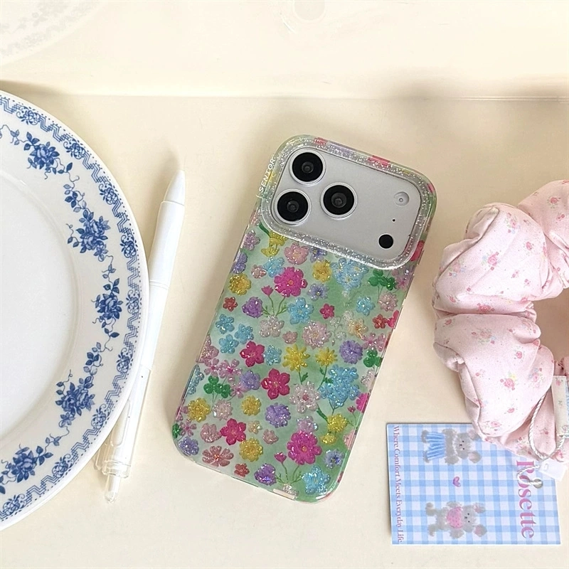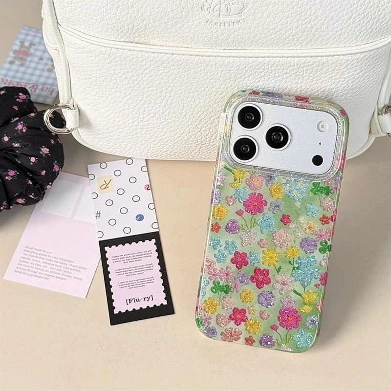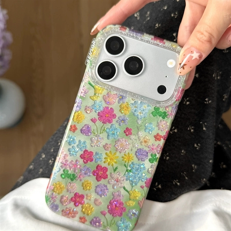 ChicCase Lab Ins Holographic Glitter Colorful Flower Phone Case for iPhone17ProMax/16Pro