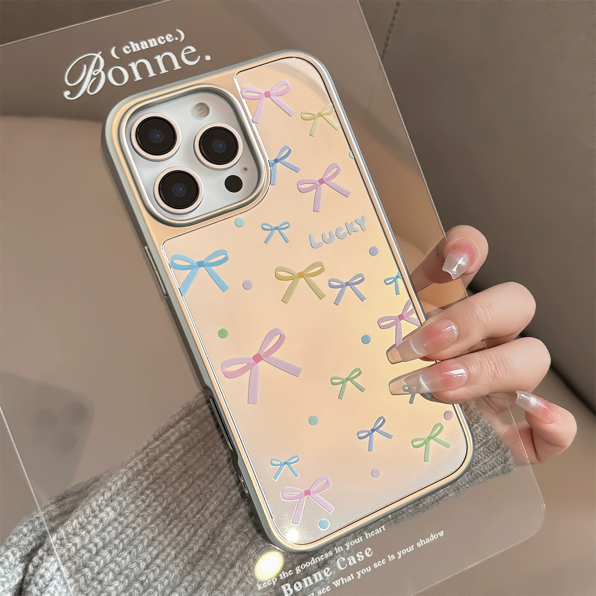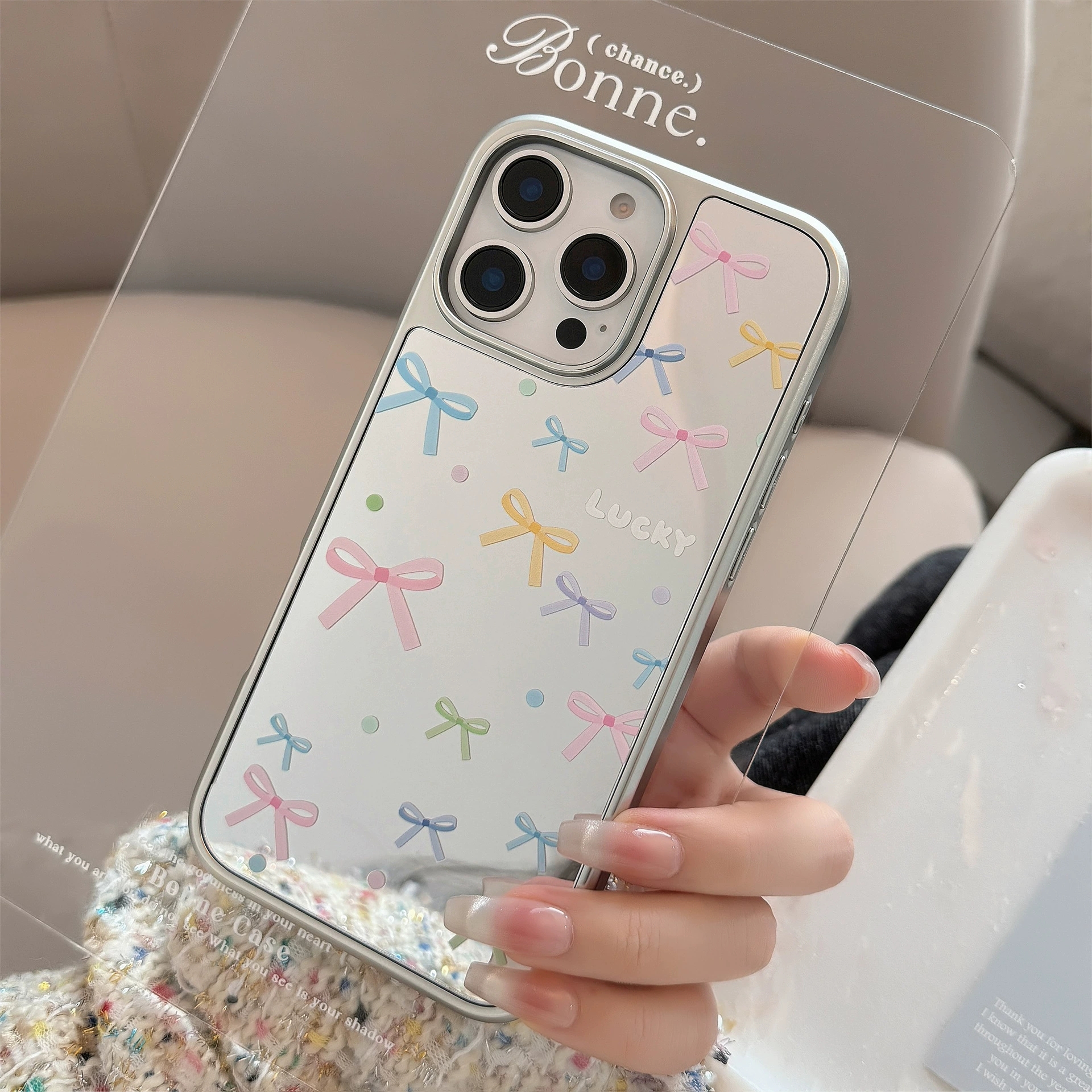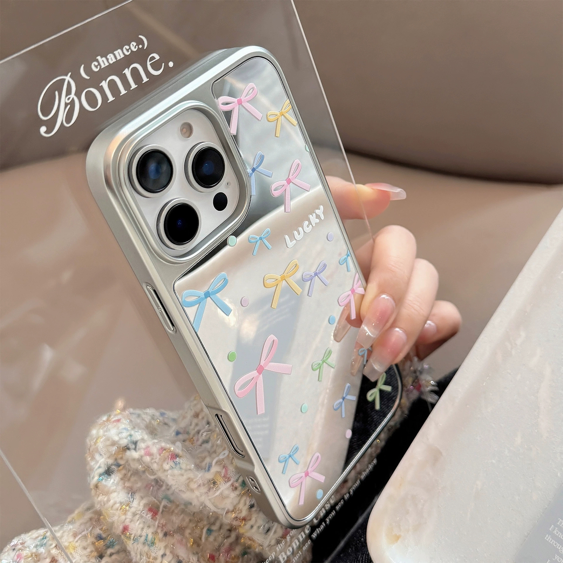 ChicCase Lab Korean Style Colorful Bow Mirror Phone Case for iPhone17/16/15ProMax Cute Shockproof Cover 🎀