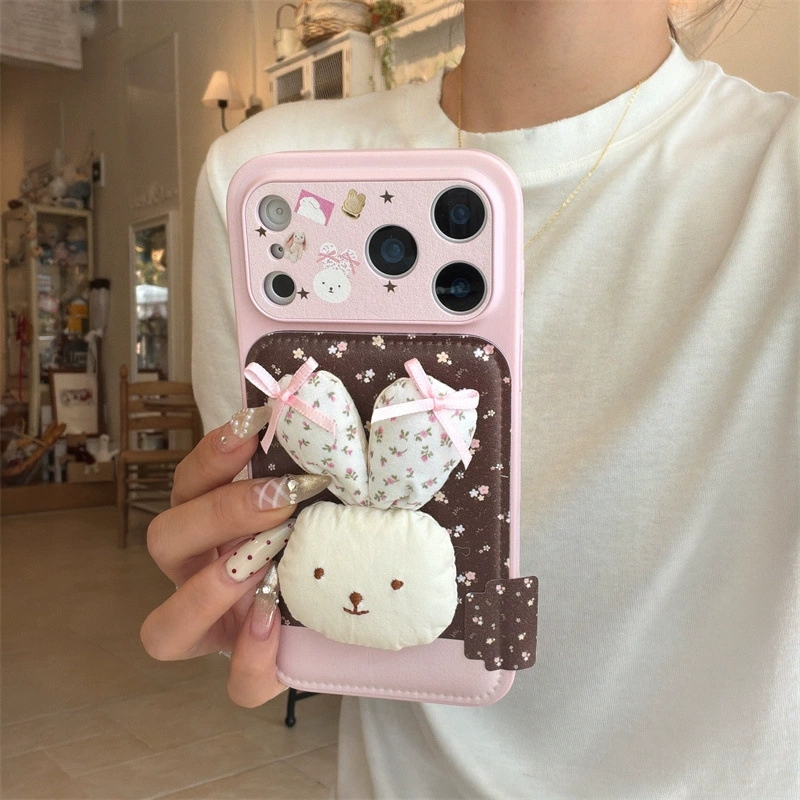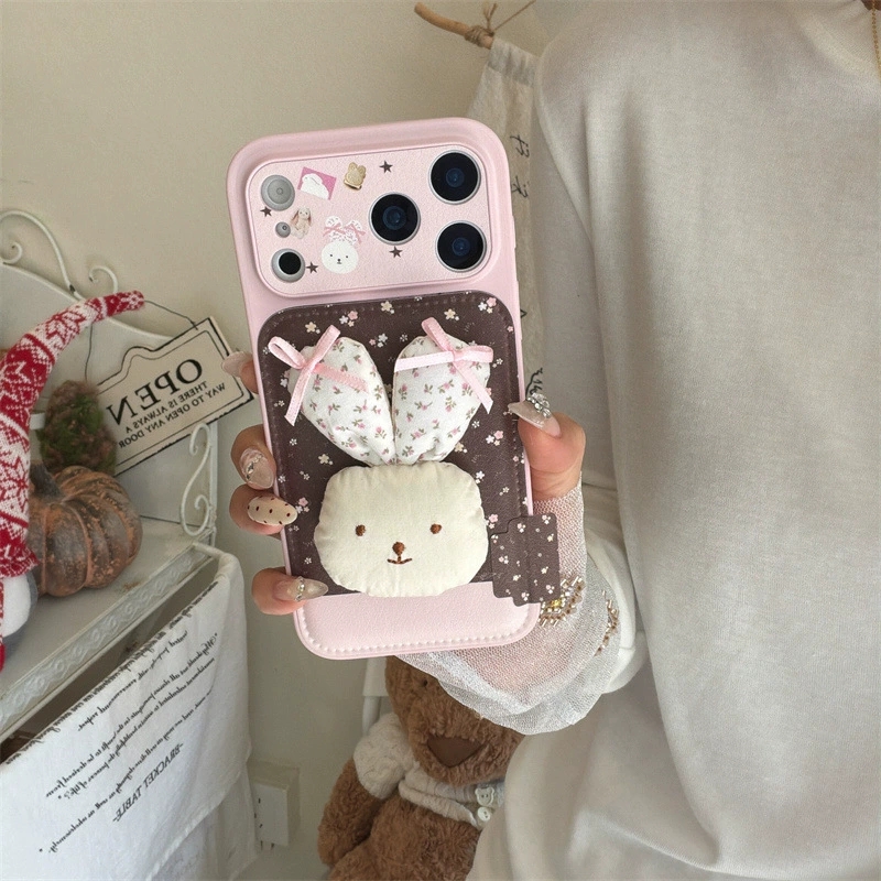ChicCase Lab Korean Style Floral 3D Bunny Phone Case for iPhone17/16/15 Cute Shockproof Cover 🐰