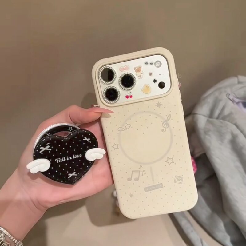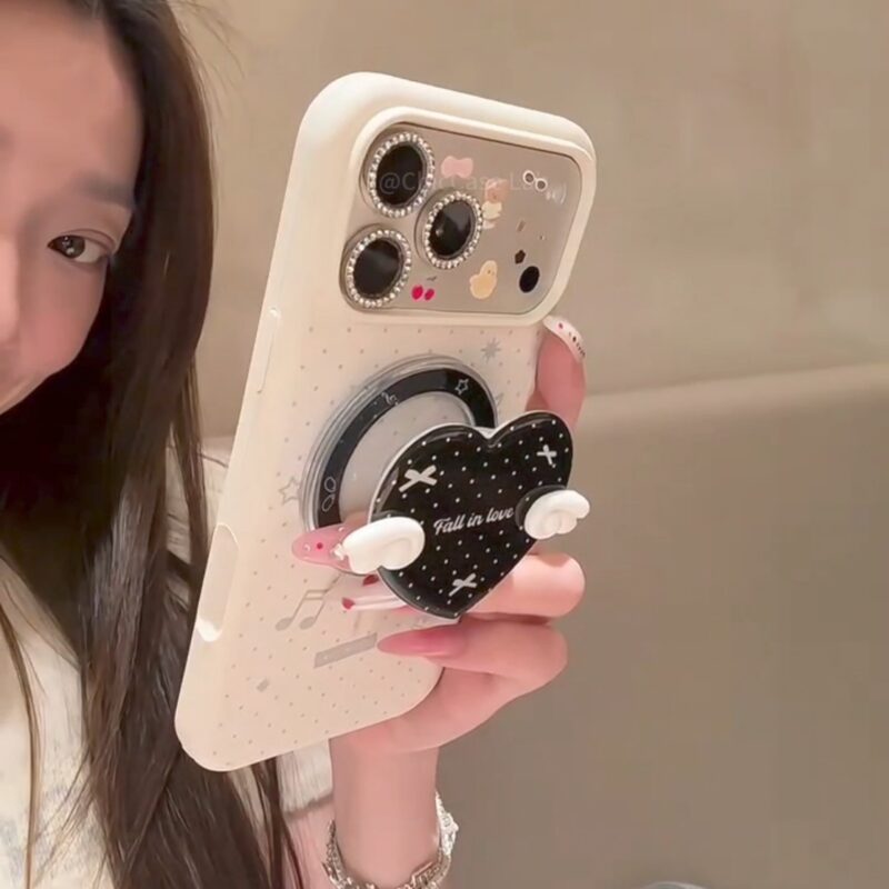 ChicCase Lab Liquid Silicone Note Wings Magnetic Stand Phone Case for iPhone17ProMax/16/14 Cute Shockproof Cover 🎵 Price range: $17.99 through $20.99Select options
