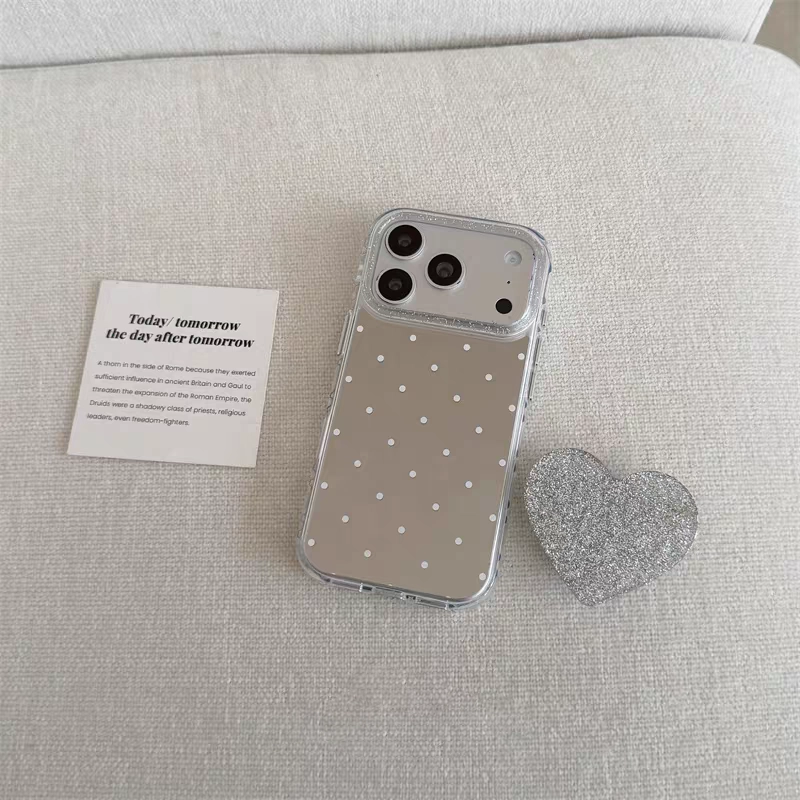 ChicCase Lab Niche Mirror Polka Dot Heart Stand Phone Case for iPhone17ProMax/16Pro