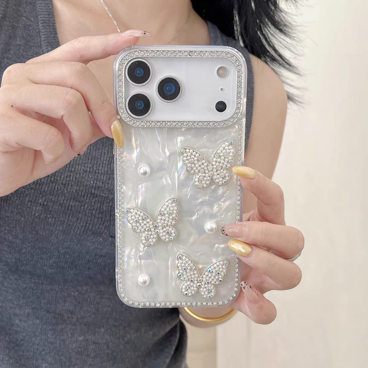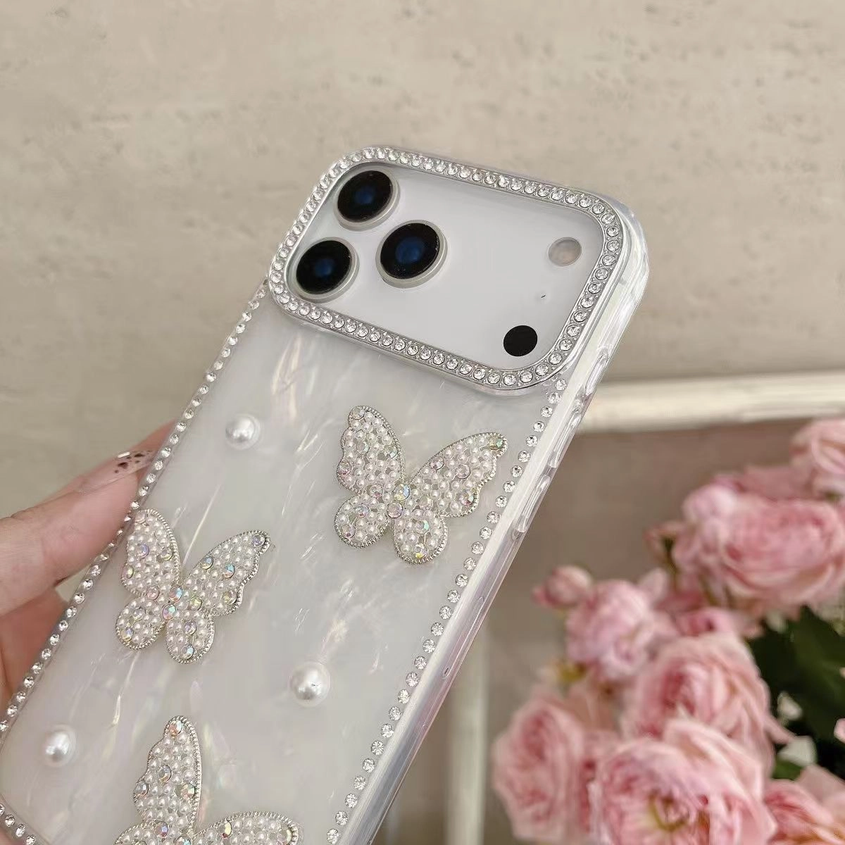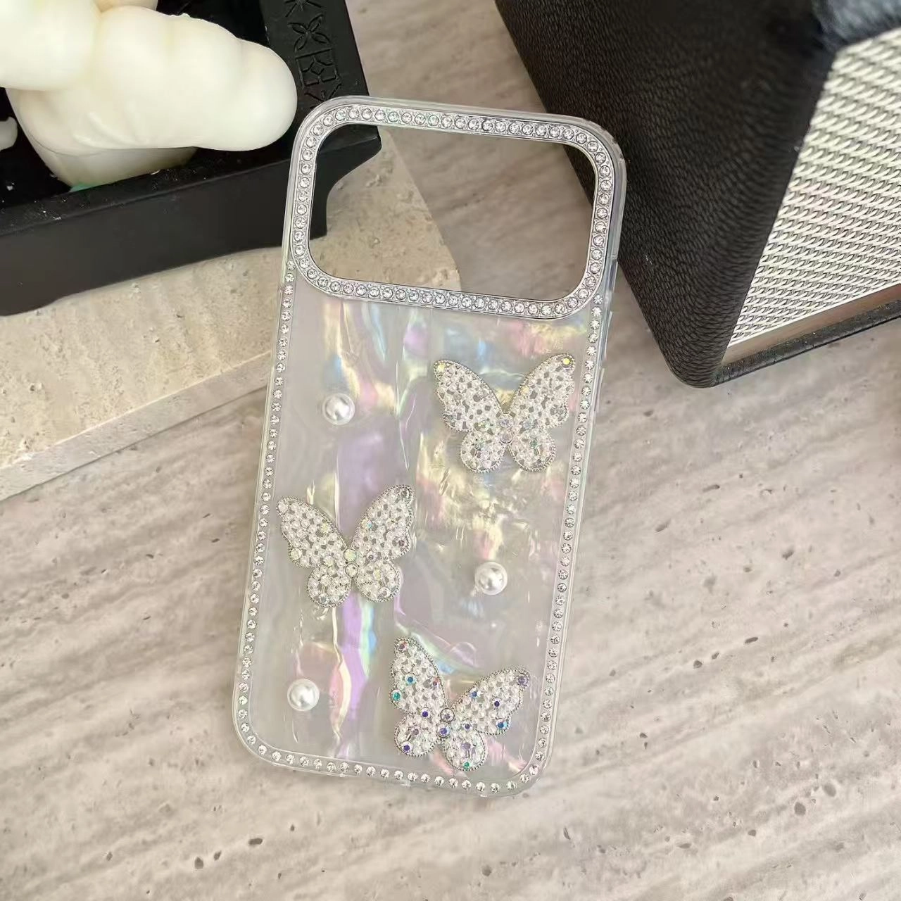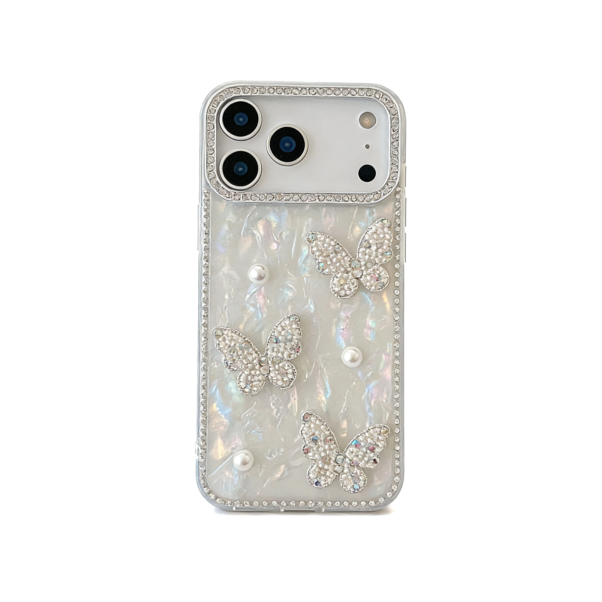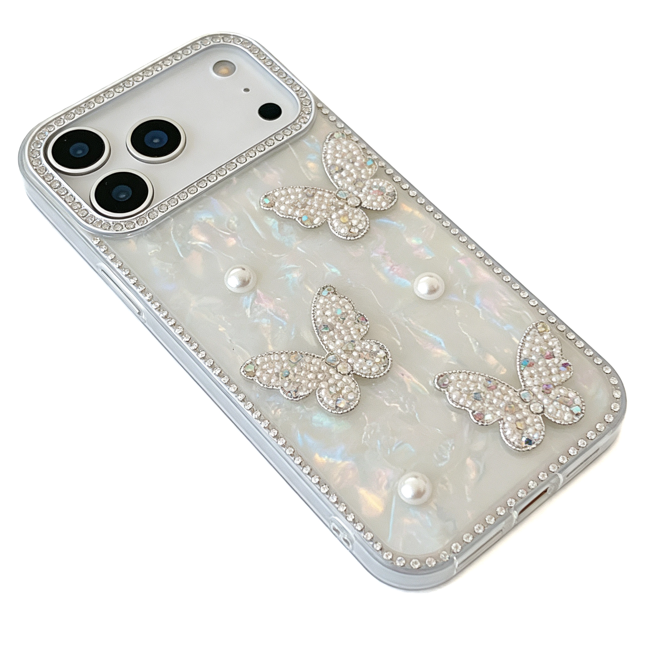ChicCase Lab Shiny 3D Pearl Butterfly Holographic Phone Case for iPhone17ProMax/16Pro