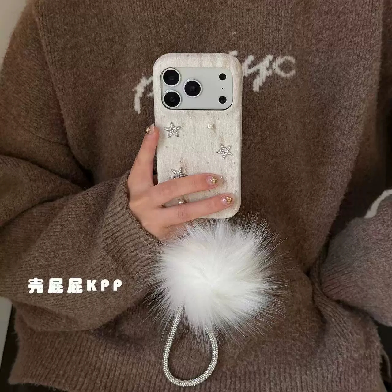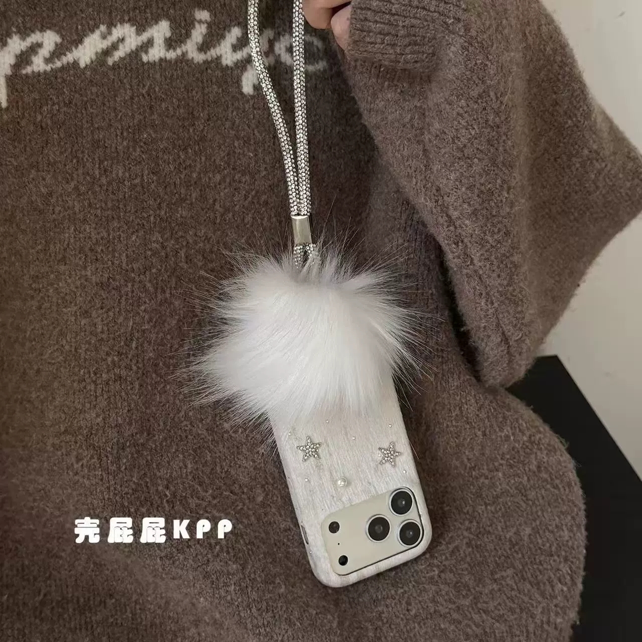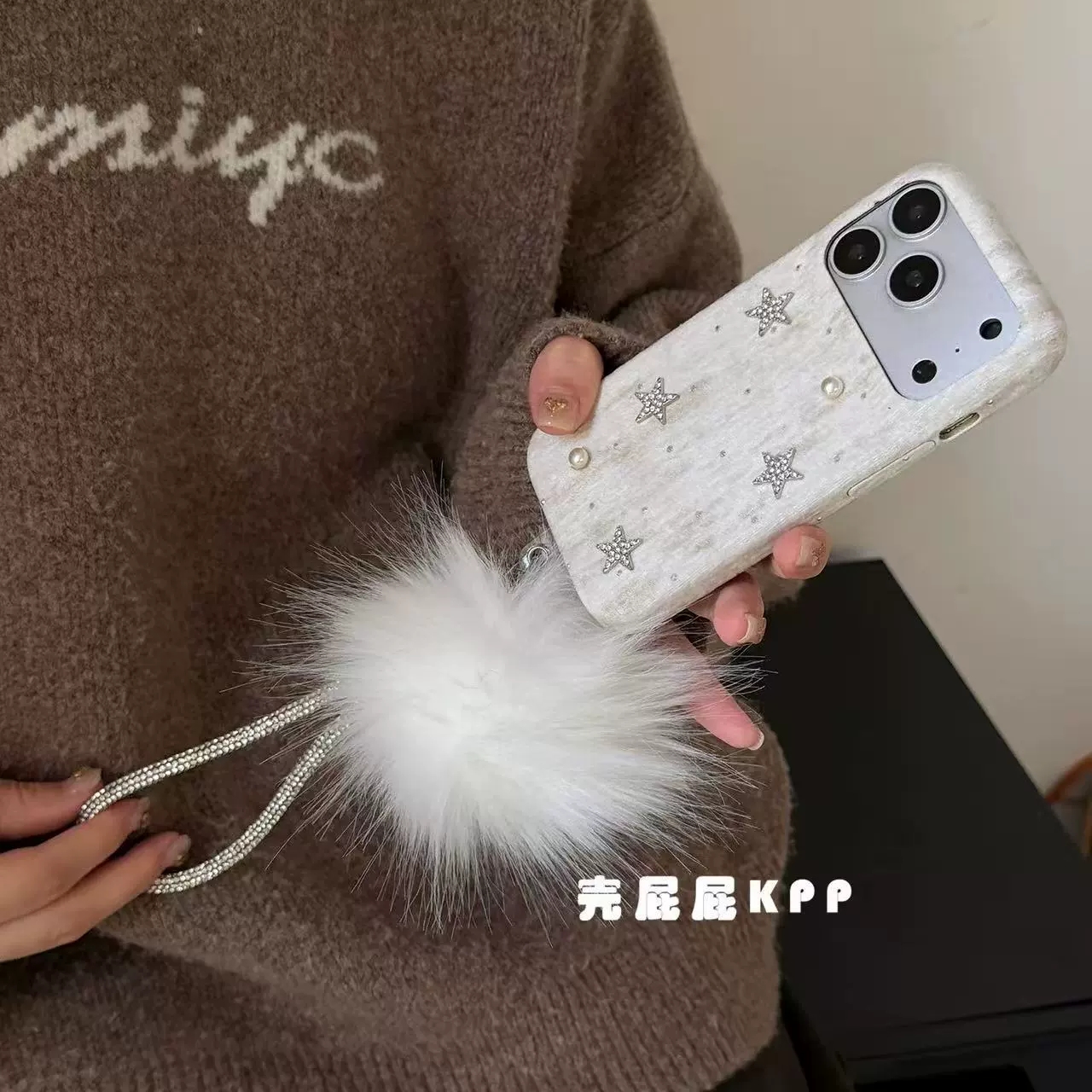 Elegant White Diamond Star✨ iPhone17promax High-End Plush Chain Phone Case