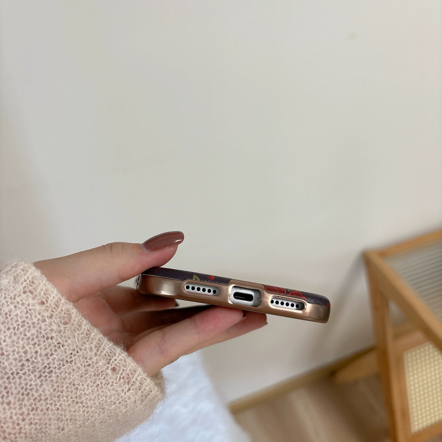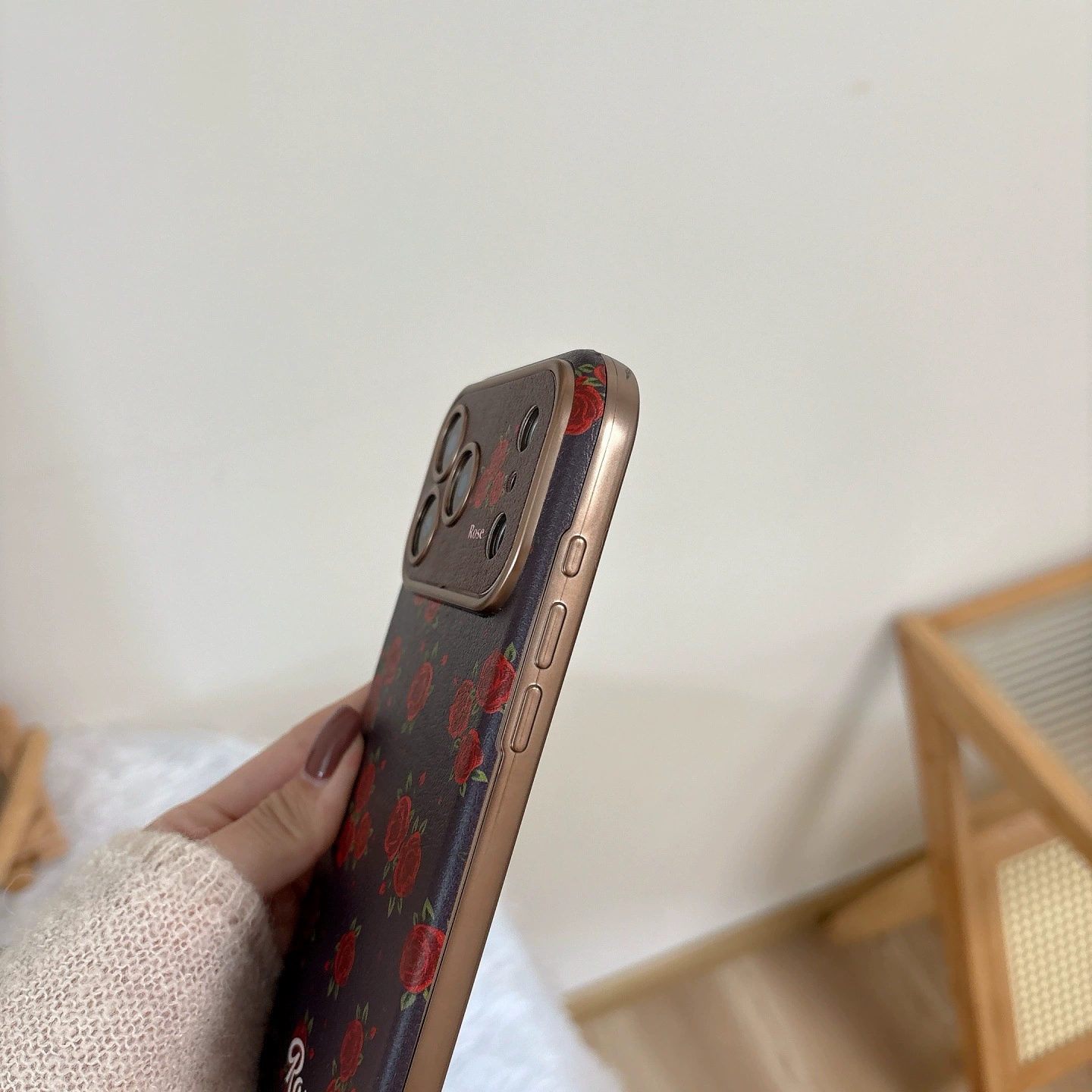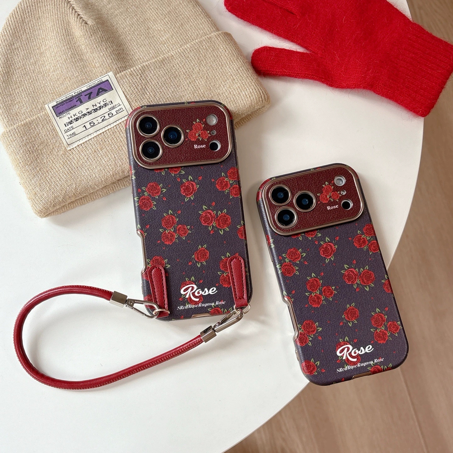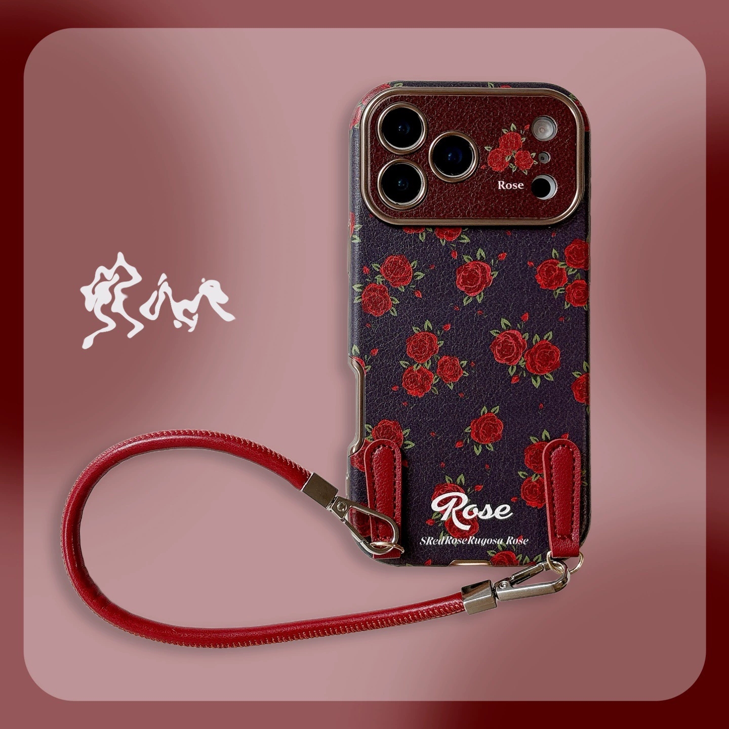Full Screen Red Rose Retro Phone Case for iPhone16promax/14/15 Romantic Girl Full Coverage Shockproof Cover (with Strap Option)