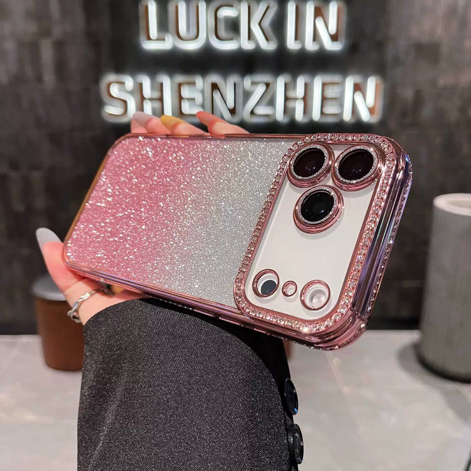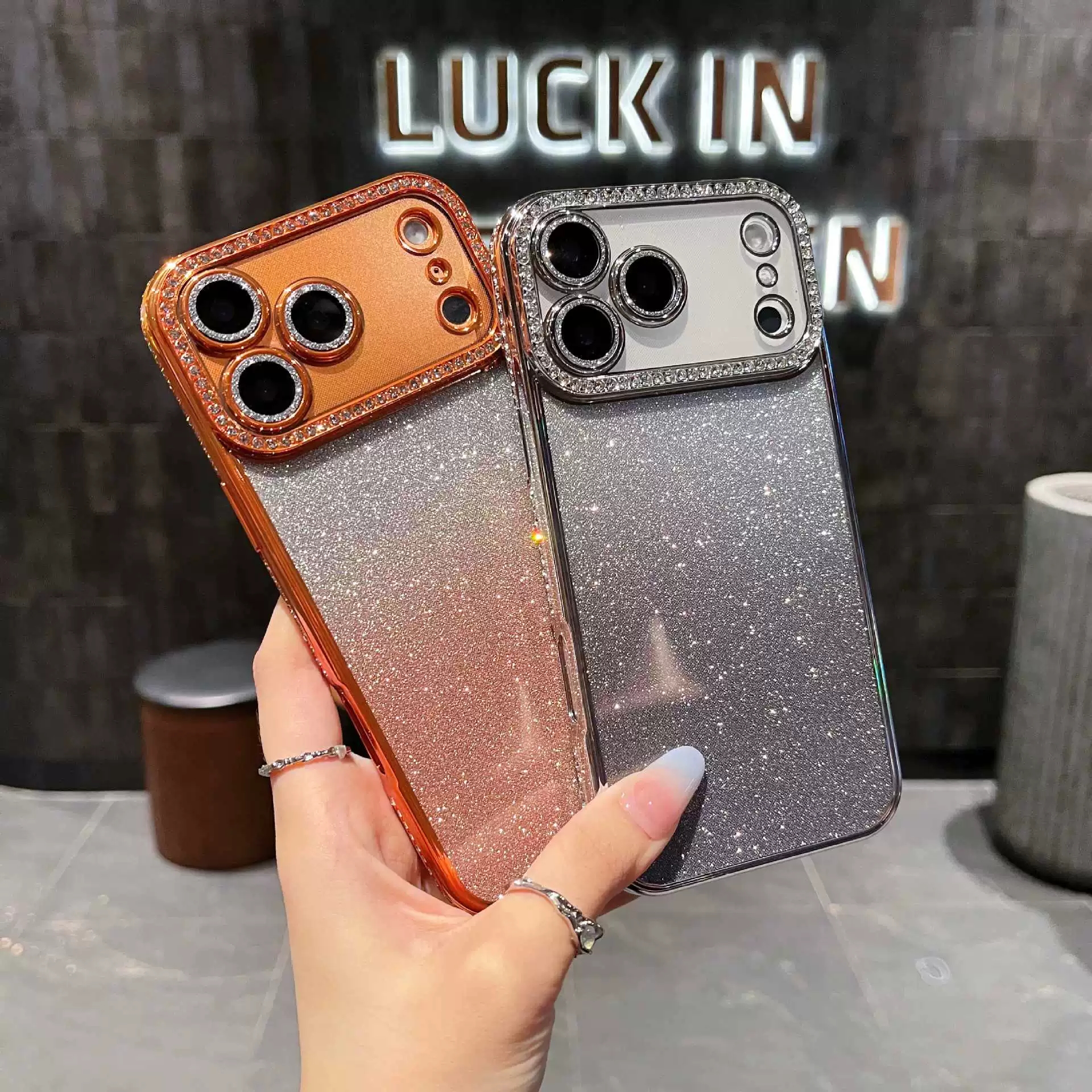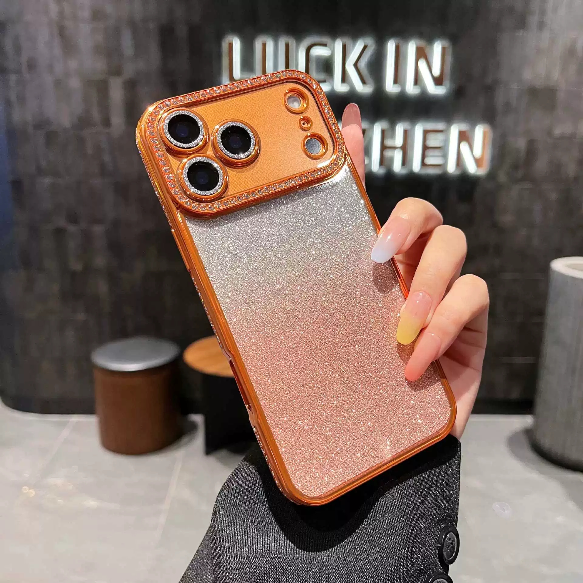 Girls! This gradient glitter diamond lens phone case💎✨🥳🌸💖 is like a walking flash! The dreamy gradient glitter back panel is paired with a diamond-encrusted lens frame, with 7 dazzling colors to choose from, such as star orange, quiet black, and space silver, compatible with iPhone17promax, 16, 15 and other models. Put it on your phone, and you’ll instantly be the most dazzling one in the crowd. Whether it’s clubbing, gathering with girlfriends or shopping and taking photos, the moment you lift your hand to take your phone, you’ll shine the whole place. Stocks of such an amazing glittery phone case are running low, so grab it now to be a shiny girl with her own highlight~