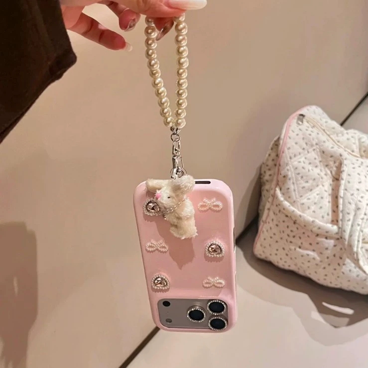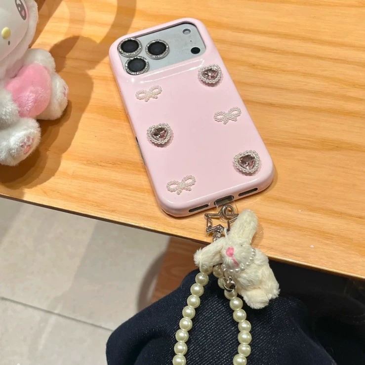 This INS-style girl pink 3D pearl heart phone case is made of premium leather material, embellished with 3D pearl hearts and diamond bows, combining beauty and texture✨. The full-coverage shockproof design precisely fits 13 models including iPhone17promax, iPhone16, and iPhone15, with two styles: single case or case + bear pearl chain. The transparent lens frame with diamonds protects the lens while enhancing elegance, making it a girly luxury accessory that easily makes you the most dazzling sweet and energetic girl in the crowd🎀.
