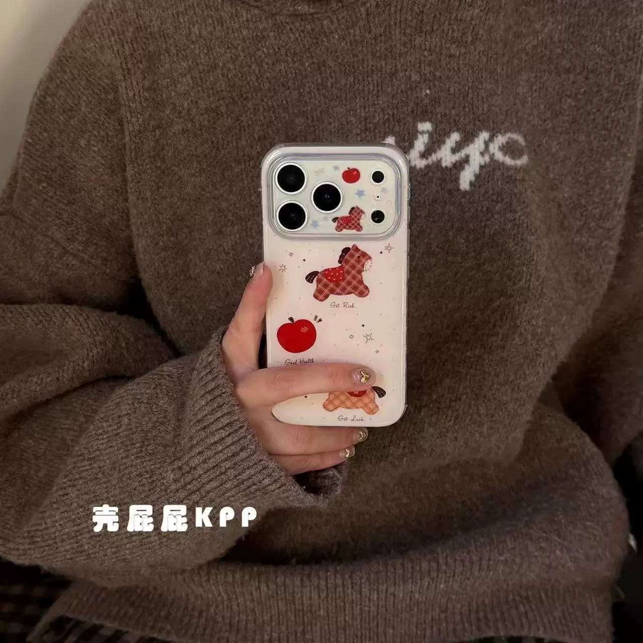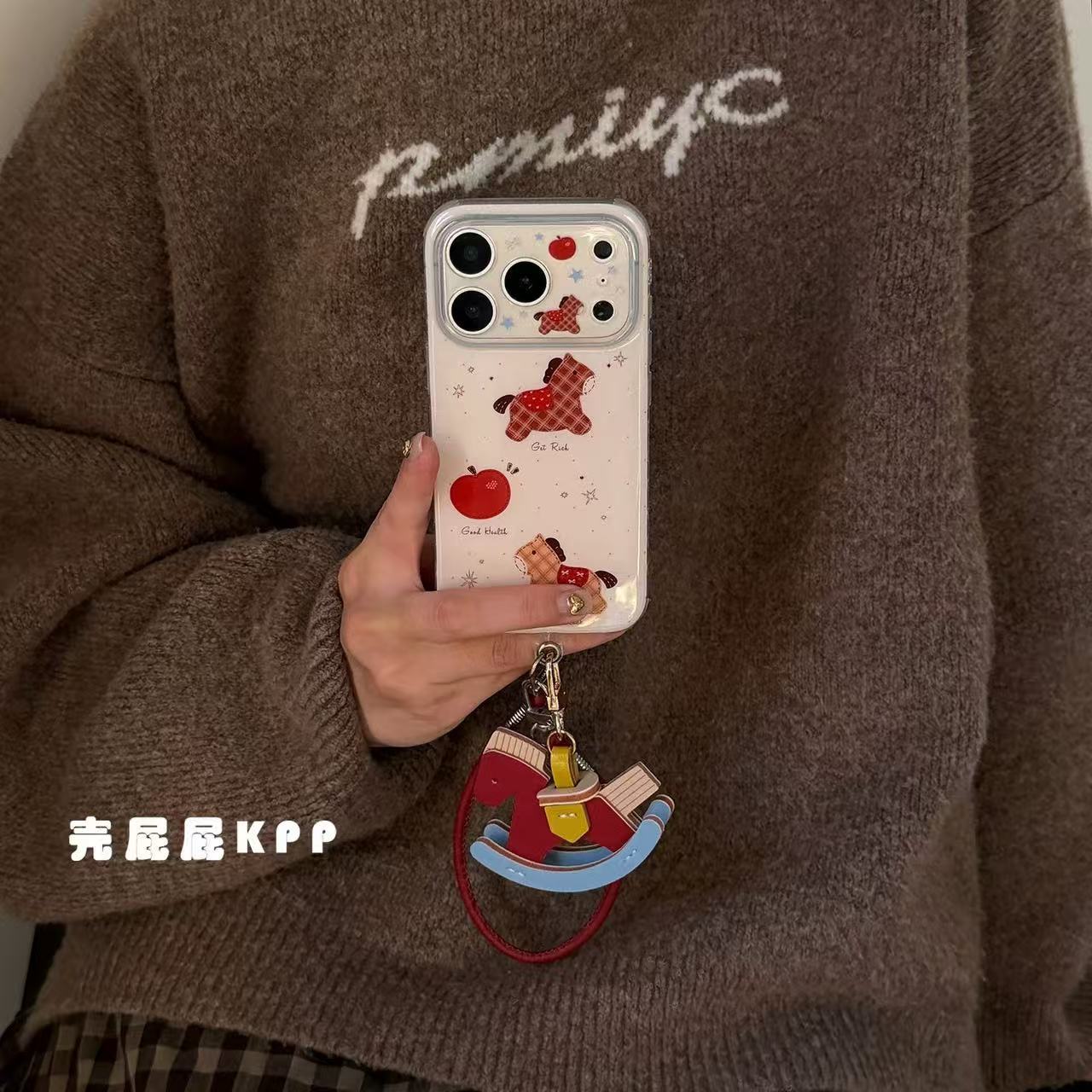 INS Korean Style Red Apple Pony🐴 iPhone17ProMax Plaid Cute Phone Case Price range: $17.99 through $19.99Select options