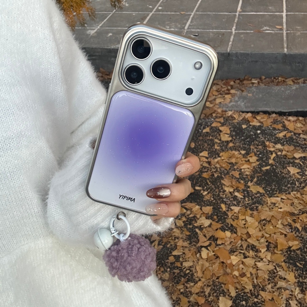 Macaron Gradient Ombre Phone Case for iPhone17promax/16/15pro Fresh Girl Full Coverage Shockproof Cover (with Pom-Pom Charm)