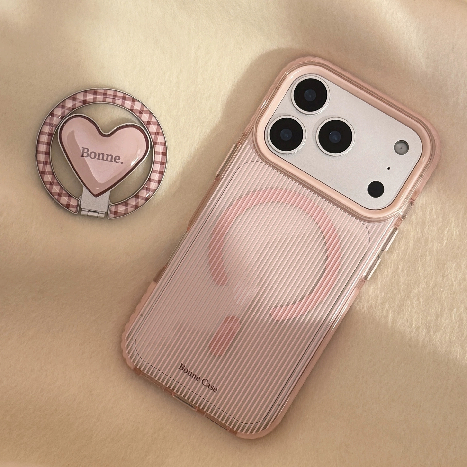 Be the first to review “Pink Brown Stripe Heart💖 iPhone17promax Magnetic Stand Fine Stripe Girlish Phone Case”