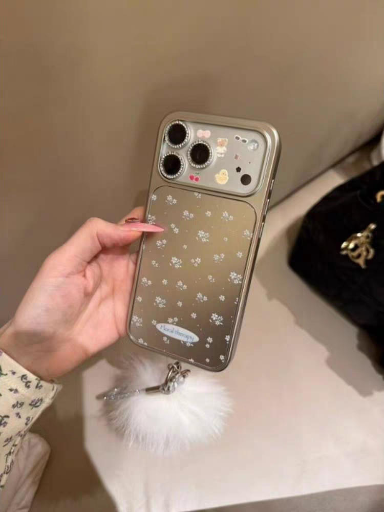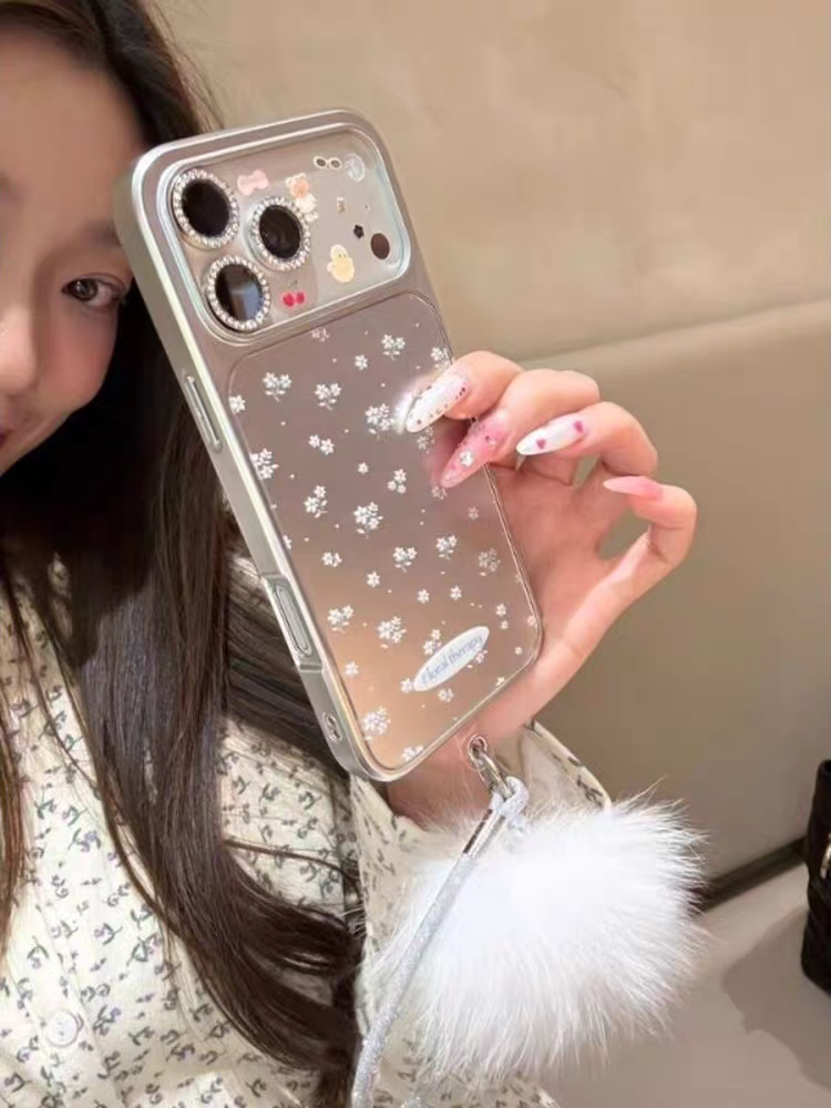 This premium electroplated silver full screen floral phone case features delicate all-over small flower prints paired with an electroplated silver frame, creating a fresh and healing girlish atmosphere✨. The diamond inlaid lens frame protects the camera while adding elegance, and the full-coverage shockproof structure precisely fits models like iPhone17promax, iPhone16pro, and iPhone15. The cool tone of electroplated silver blends with the soft floral elements, making your phone a standout and easily making you the most dazzling fresh girl in the crowd🎀.