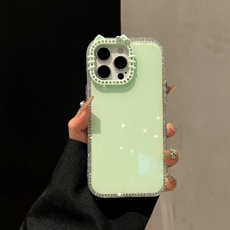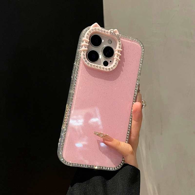 Who can resist this cat ear + full diamond girlish phone case🎀? With glitter border and multiple colors available, compatible with iPhone17pro/16. The blingbling texture is super eye-catching~